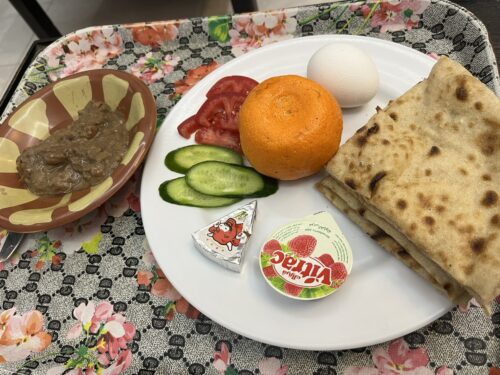 私は朝食無しで予約をしたのですが、初日はご厚意で↑の写真の栄養たっぷりの朝食を食べさせてくれました。