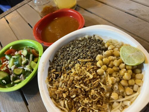 米と豆とパスタにソースをかけて食べるという炭水化物爆弾で、途中から少々飽きが来るのは否めませんが、大変美味でした。