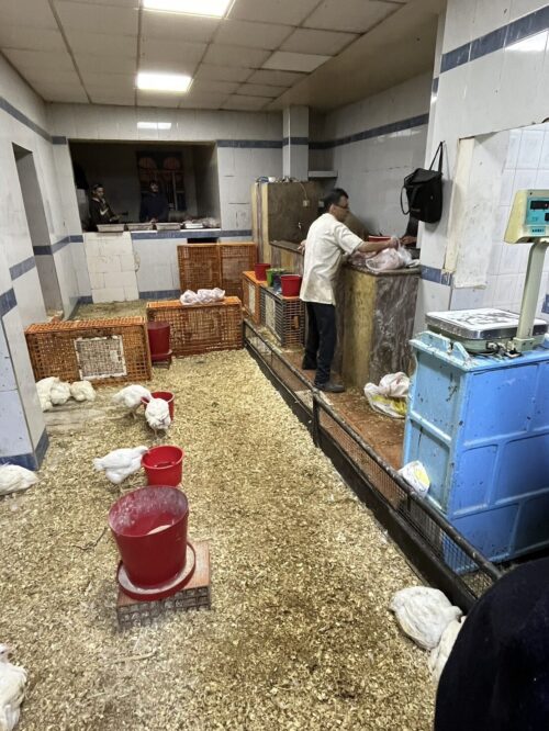 通りすがった肉屋さんでは、鶏が所狭しとひしめき合っていました。